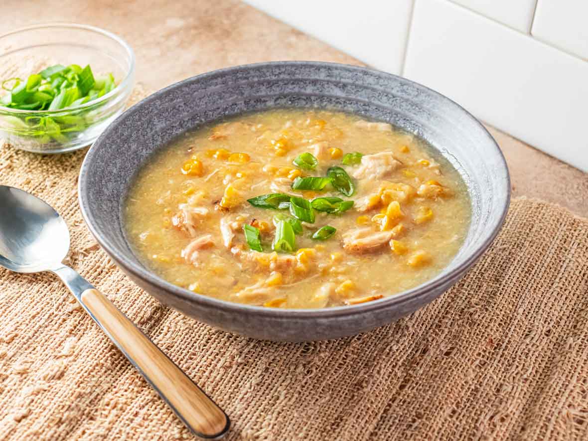 Here’s a hint for making your chicken and corn soup look picture-perfect instead of cloudy: Pour the egg in very slowly and stir very lightly to avoid breaking up those lovely egg ribbons.